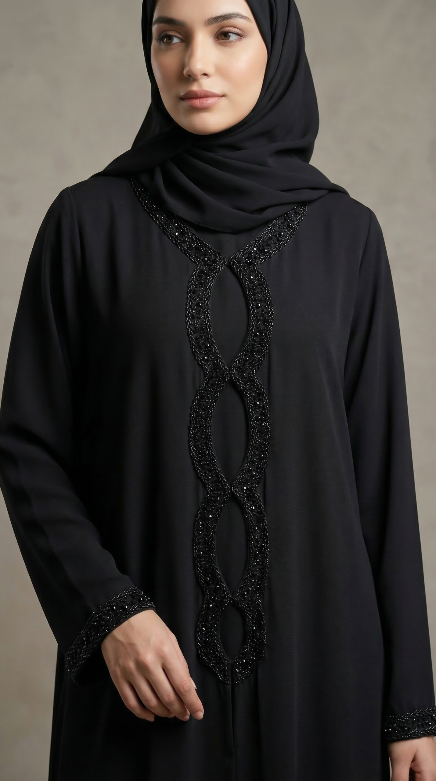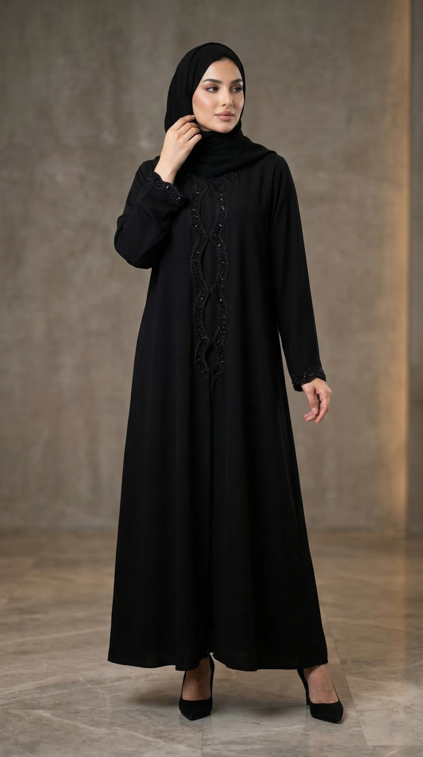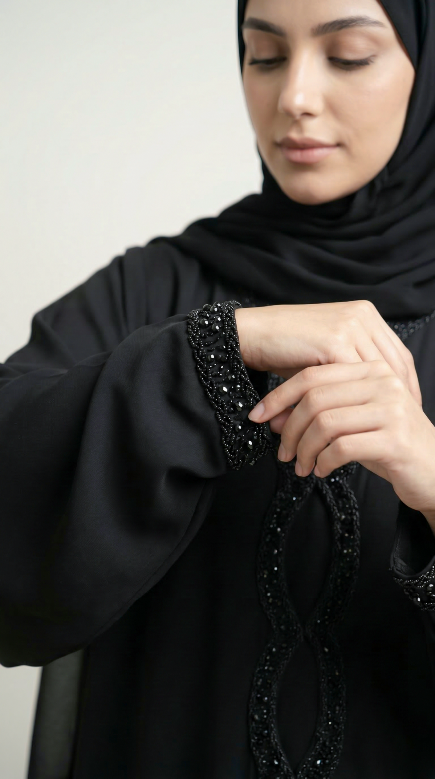 تجسيد حقيقي للفخامة ودقة التفاصيل في تصميم واحد! تلتقي أصالة العباية السوداء مع إبداع الحرفية اليدوية في هذه القطعة الاستثنائية من “روزيتا”. صُممت هذه العباية خصيصاً للمرأة التي تقدر الفن والذوق الرفيع، لتكون خياركِ الأول لإطلالة رمضانية راقية تلفت الأنظار في كل مناسبة.